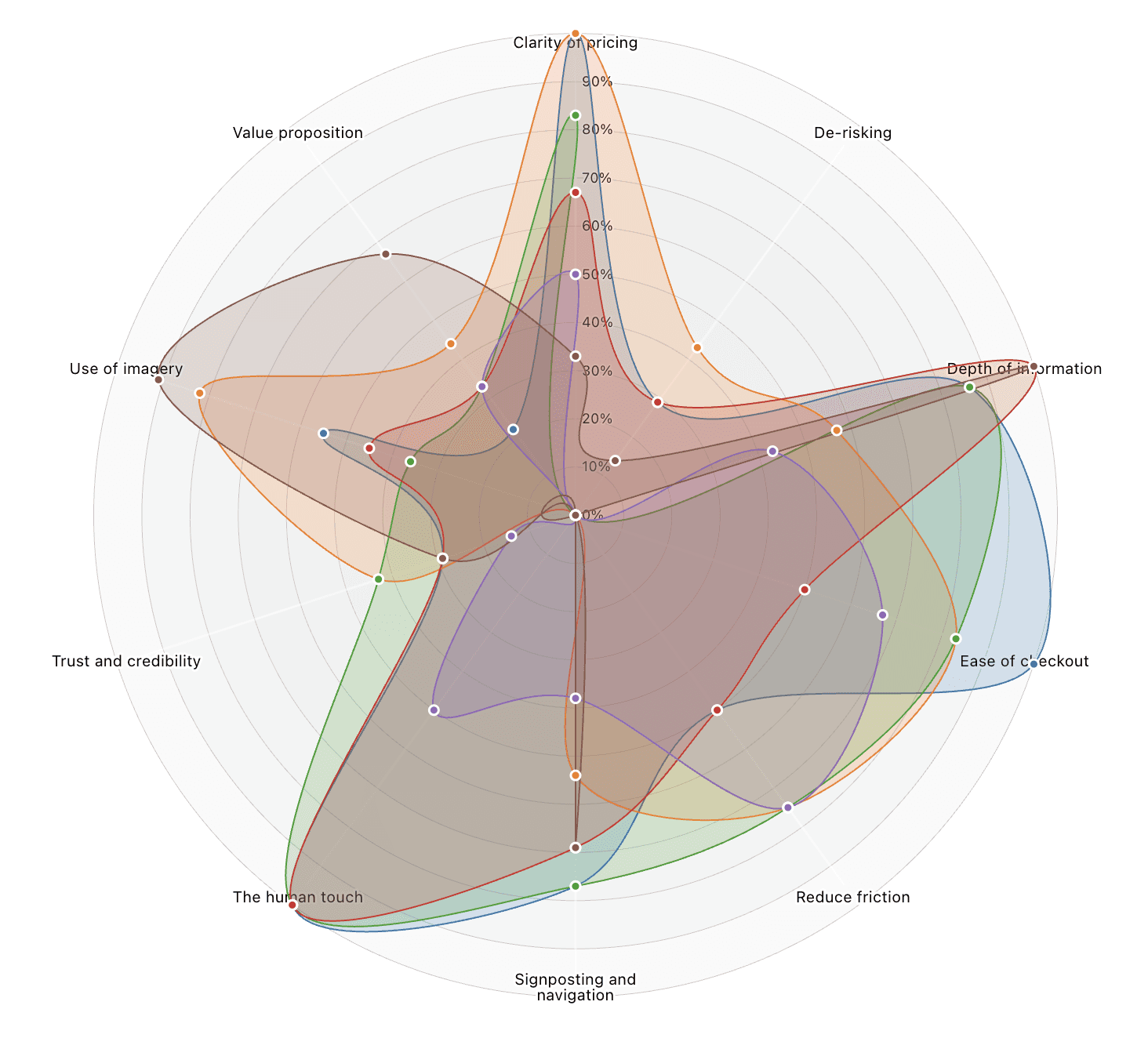 There are significant variations in customer experience by brand with evidence of a consistent shortfall in de-risking messaging and elements to build trust and credibility, the customer experience analysis suggests that whilst many brands present effective customer experiences for clubs, classes and sign up experiences there is potentially a lack of effective messaging to build engagement within users who are in browsing or discovery mindset.